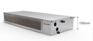- The thickness of the fan coils is only 195 mm. Save money with an additional condensate drain pump 30 mm space for installation.