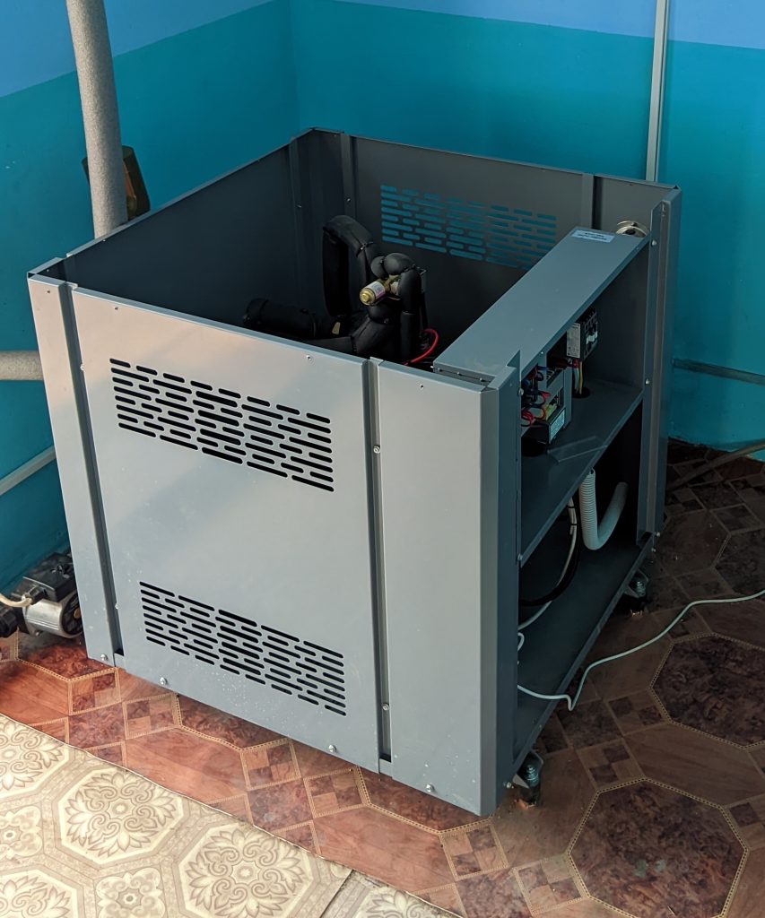 Внутрішній блок теплового насоса встановлений у котельні, де раніше був твердопаливний котел.