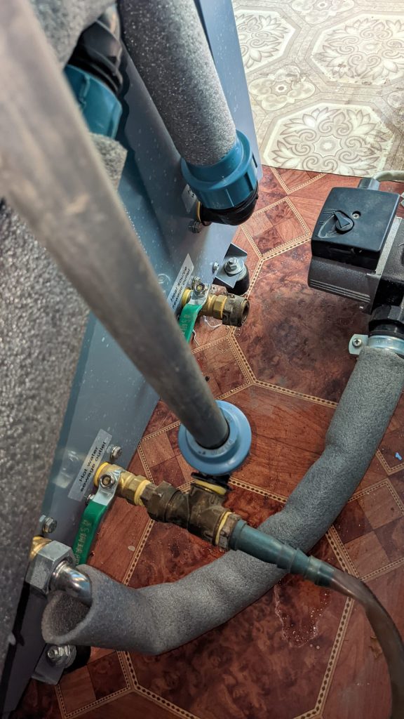 Усі трубопроводи системи обов'язково утеплюються для зменшення тепловтрат. Це дозволяє підтримувати високий рівень ефективності системи та уникнути непотрібного витоку тепла. Особливо важливим є утеплення труб, які проходять через неопалювані приміщення, такі як підвал або технічні кімнати.