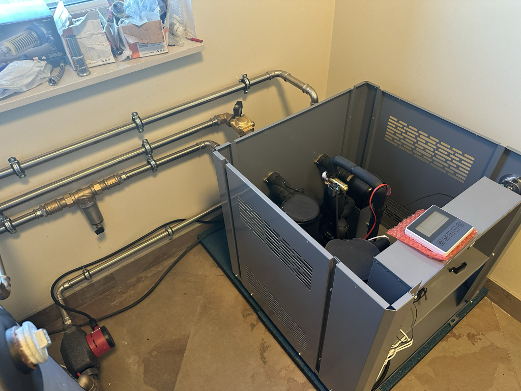 В результаті аналізу можливостей клієнта та ергономічності будинку, було вирішено встановити геотермальний тепловий насос Raymer RAY-10WW, який в 4-5 раз ефективніше електрокотла, який досі був головним джерелом опалення у будинку.