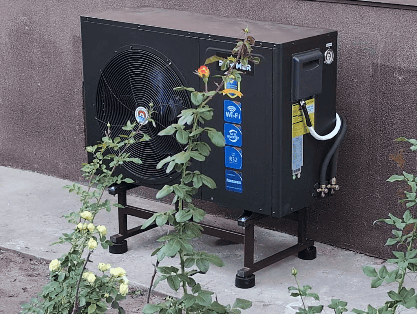 Зовнішній блок теплового насоса Raymer RAY-15DS2-EVI було встановлено збоку від будинку у відкритому просторі. Цей варіант вибрано з кількох причин: Забезпечення вільного циркуляції повітря навколо теплообмінника, зручність у майбутньому технічному обслуговуванні та мінімальний вплив на появу фасаду.