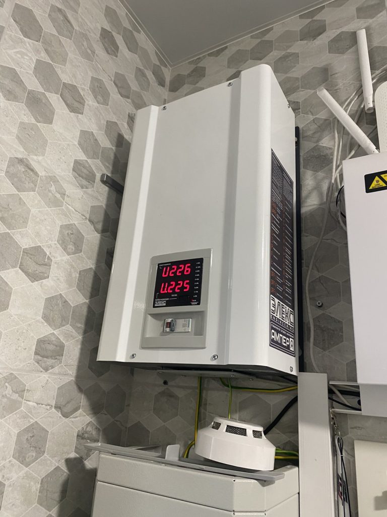 Для стабільної та безпечної роботи теплового насоса встановлено стабілізатор напруги Елекс Ампер, що захищає систему від коливань напруги та інших можливих збоїв у електропостачанні.