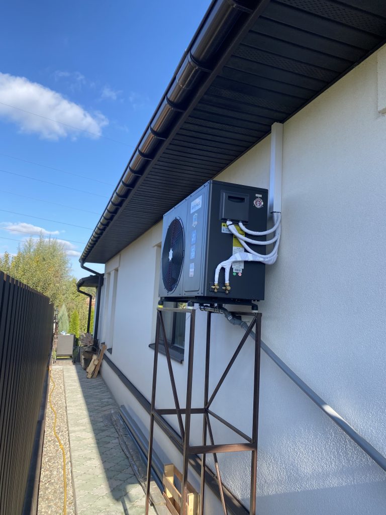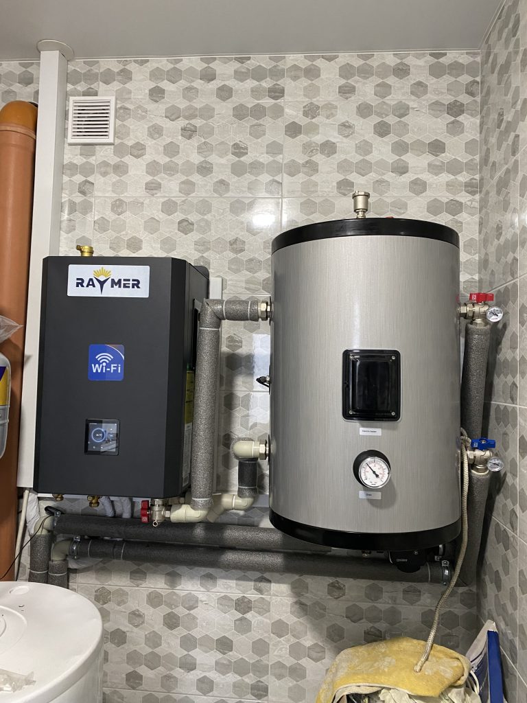 На основі даних, отриманих від клієнта (товщина утеплення, комунікацій опалення, розміщення радіаторів та котельні) було ухвалено рішення встановити тепловий насос Raymer RAY-13DS2-EVI, якого буде цілком достатньо для опалення заданої площі. Даний тепловий насос хороша заміна електрокотла, так як він здатний працювати в 5 раз ефективніше, виробляючи 4,9 кВт на 1 кВт споживання, тоді як електрокотел працює в діапазоні 1:1.