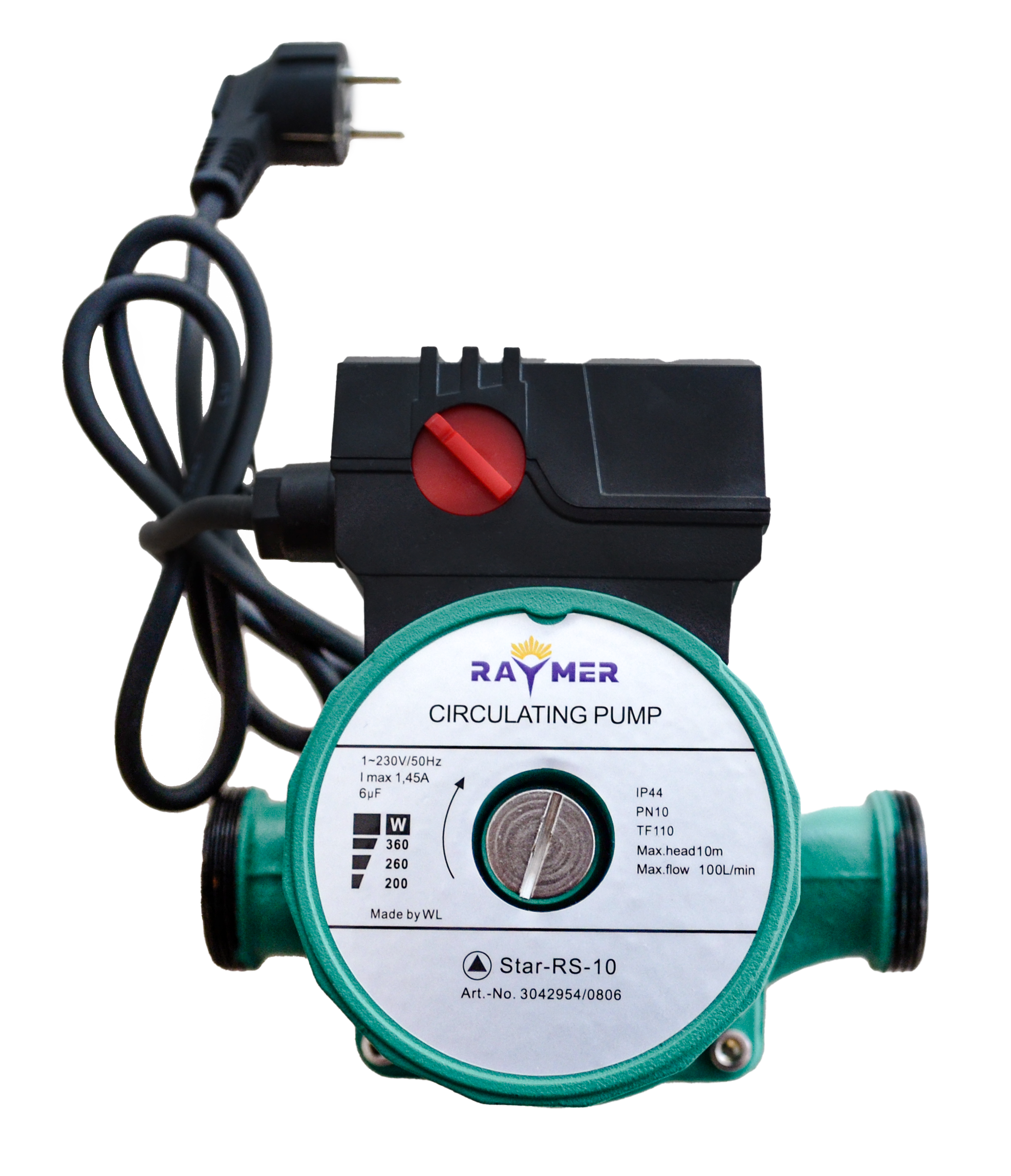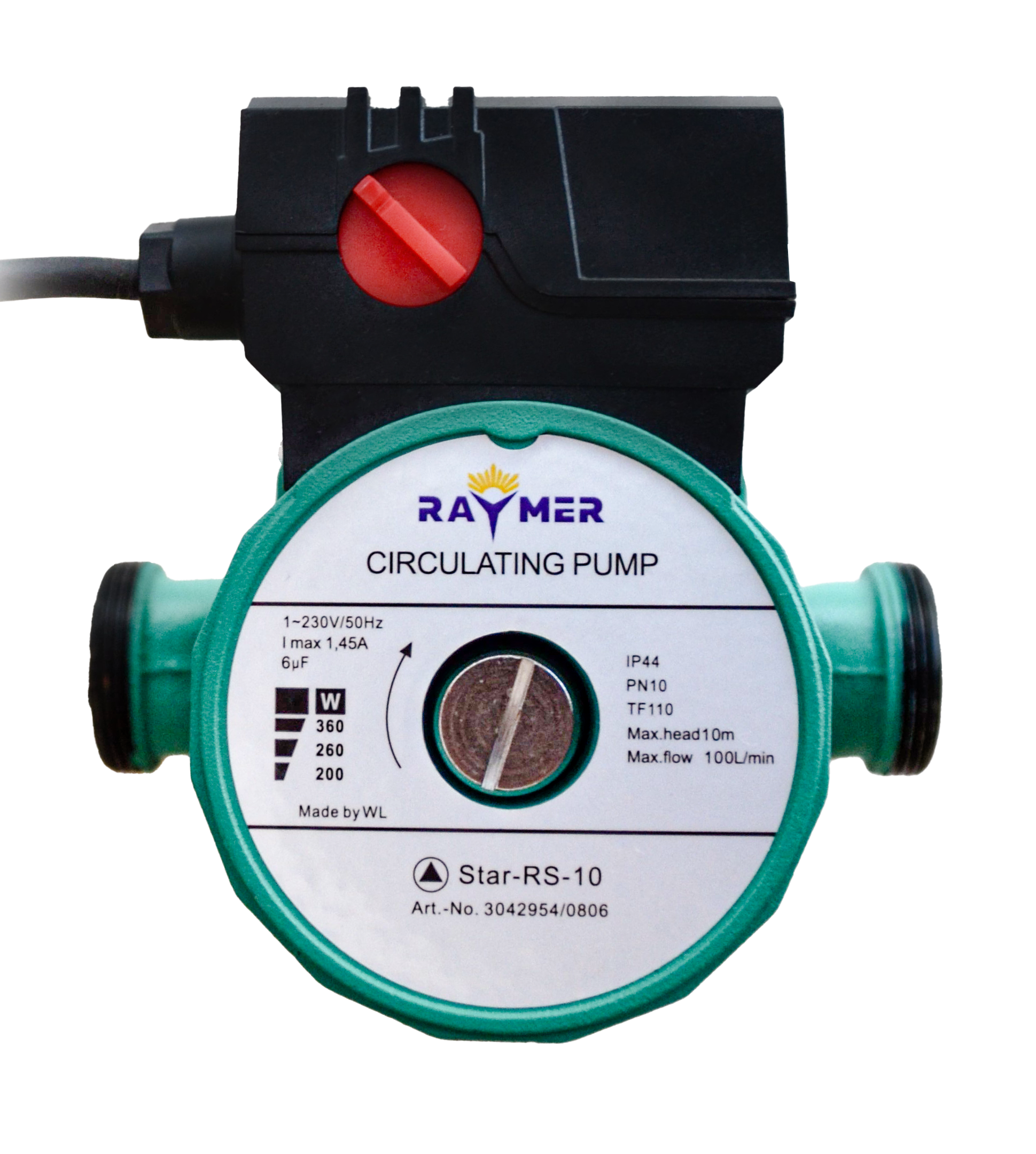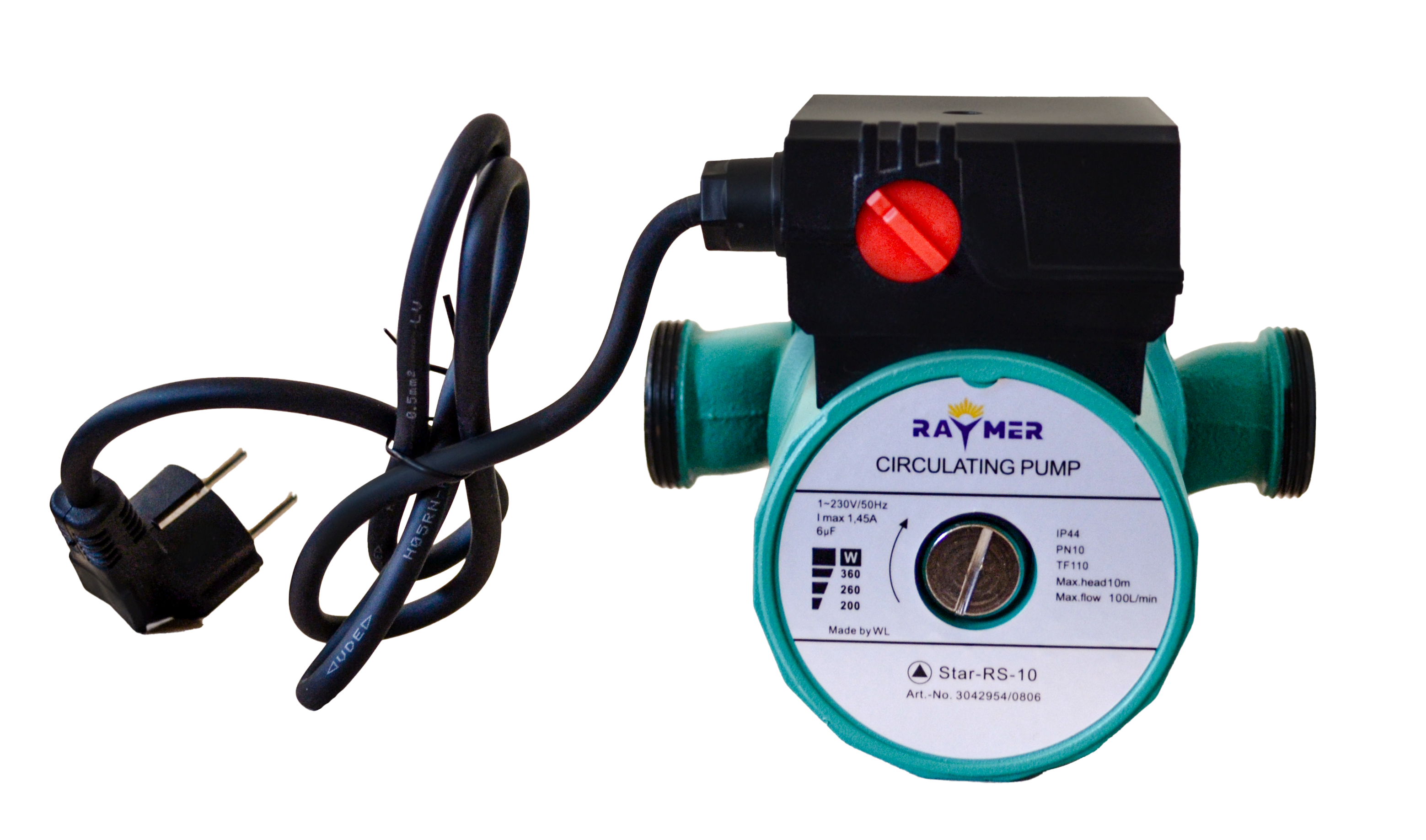 Насос циркуляційний Raymer RS-10 – циркуляційний насос з мокрим ротором та різьбовим з'єднанням. Застосовується в системах водяного опалення, промислових циркуляційних установках, системах подачі гарячої води та кондиціювання.
