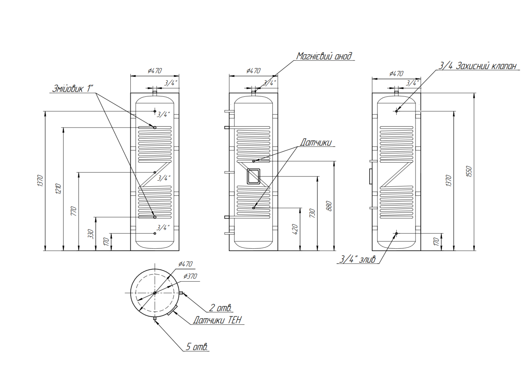 | Матеріал зовнішнього резервуару: | пофарбована оцинкована сталь — 0,55 мм |