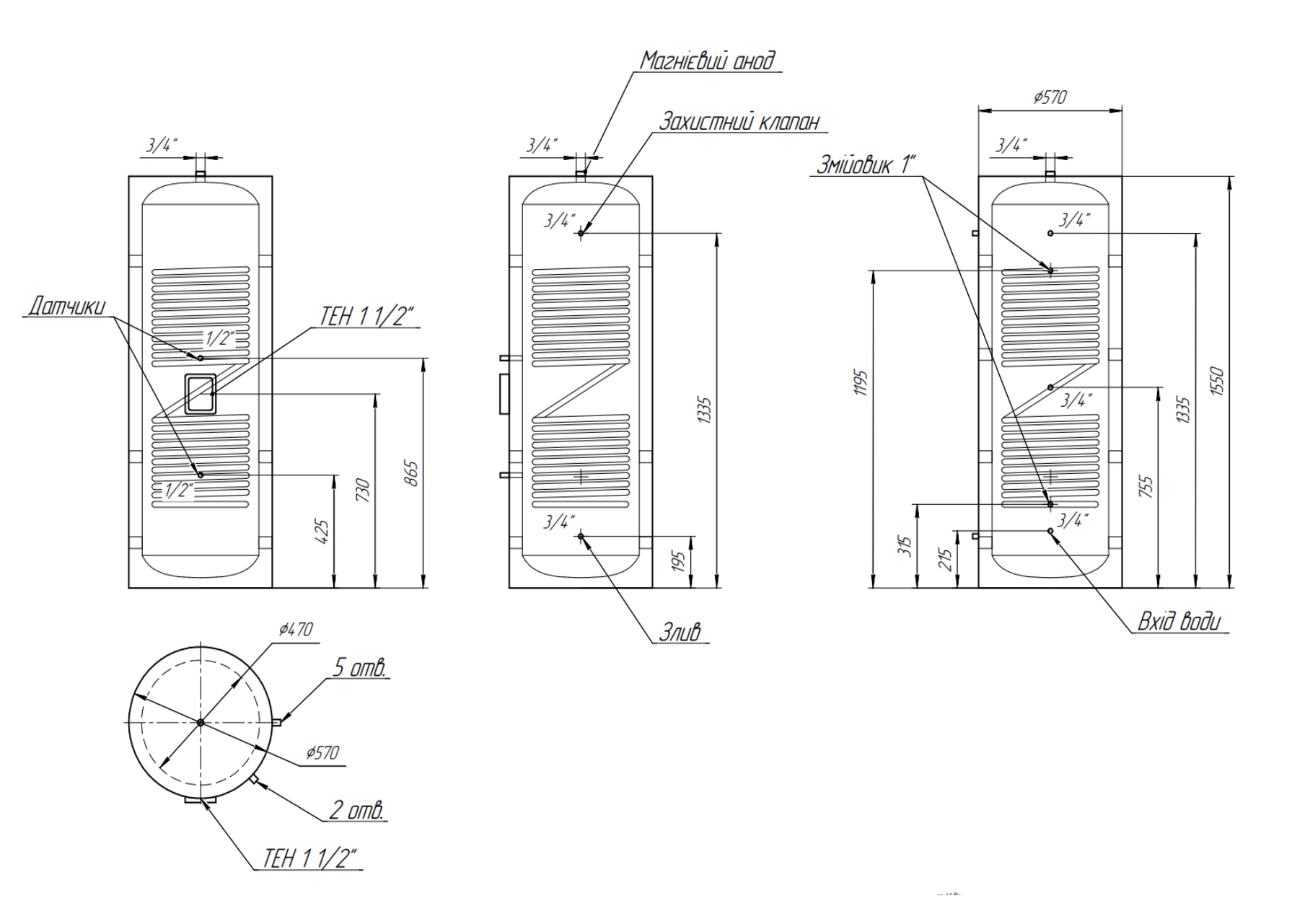 | Матеріал зовнішнього резервуару: | пофарбована оцинкована сталь — 0,55 мм |