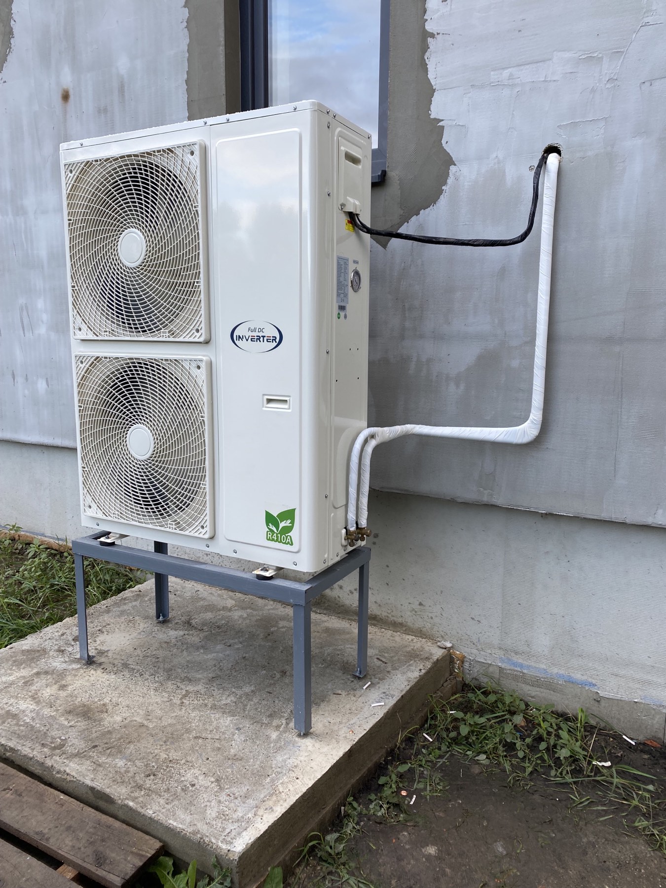 - Підготовка інфраструктури: Прокладання комунікацій, підготовка основи для зовнішнього блоку та монтажні роботи зі встановлення додаткового обладнання (акумулюючий бак і бойлер).
