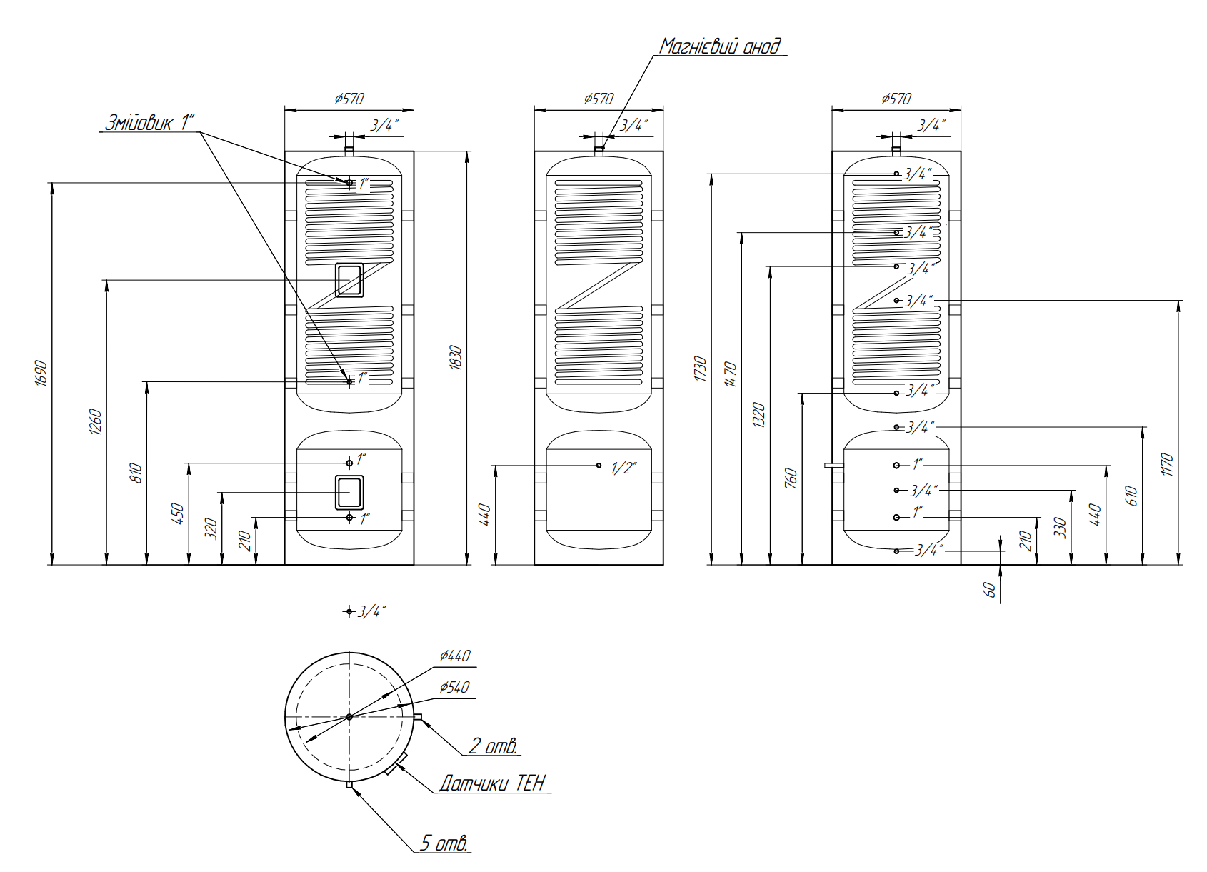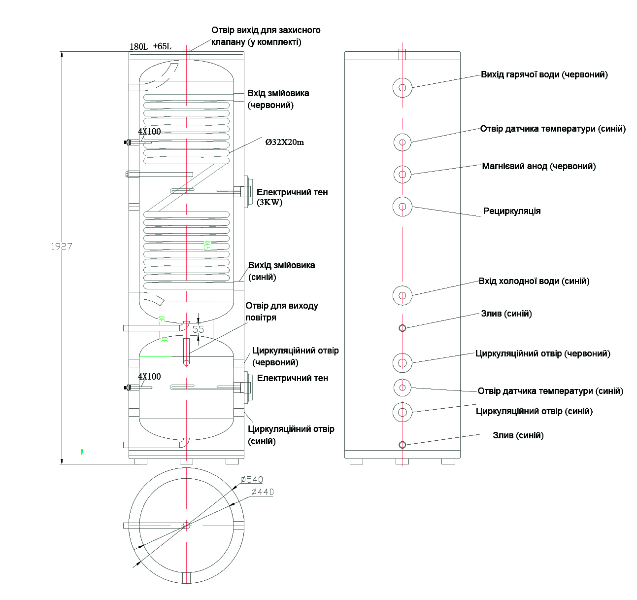 Комбинированный бак гибрид Raymer G180/65 ( DHW180L+ буфер 65L) (нержавеющая сталь)