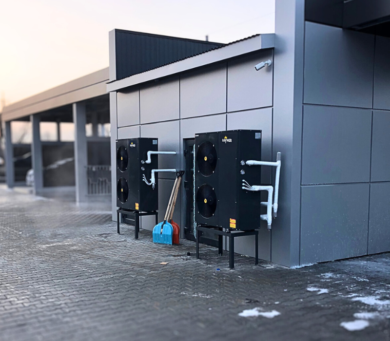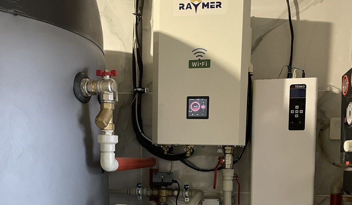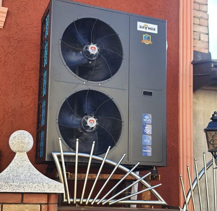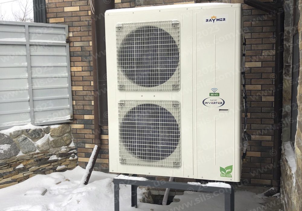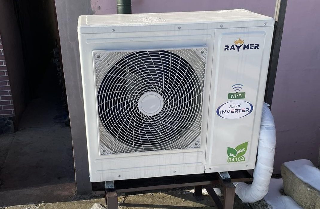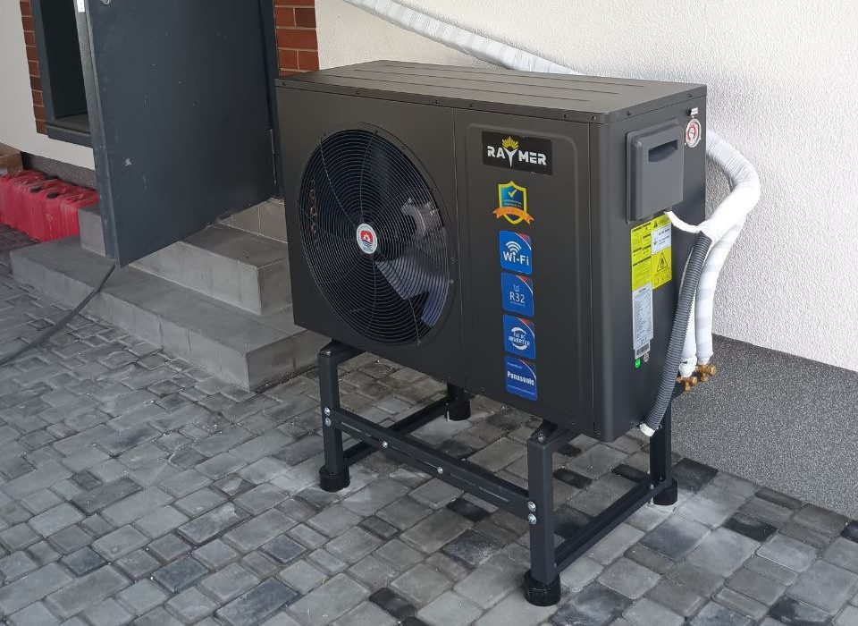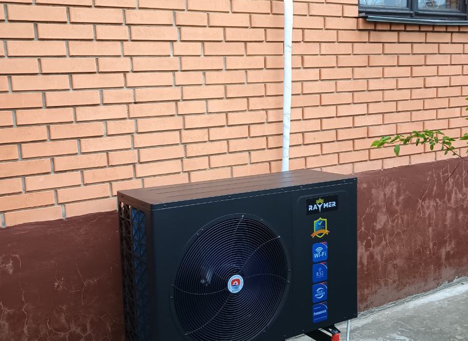 В рамках проекта был выбран тепловой насос Raymer RAY-10DS2-EVI (10 кВт). Это энергоэффективная модель с инверторным компрессором, который может работать при температуре ниже -25°C и способен полностью заменить электрокотел в условиях украинского климата.