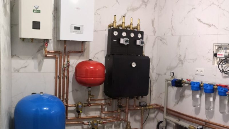 Установка системы была выполнена нашей командой, ведь в доме ограниченное помещение для котельной, который требовал точного подхода, грамотного планирования и опыта работы с большими насосами.