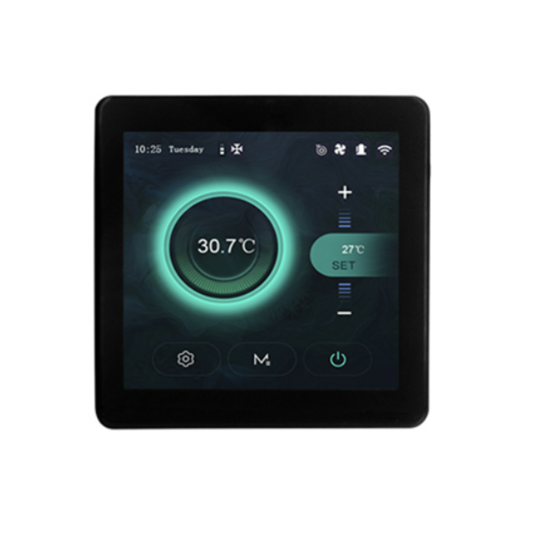 Для удобства пользователя контроллер оснащен цветным сенсорным TFT дисплеем, через который можно осуществлять настройки и контроль работы теплового насоса. На дисплее отображаются все ключевые параметры системы, а также сообщения о текущем состоянии и возможных неисправностях.