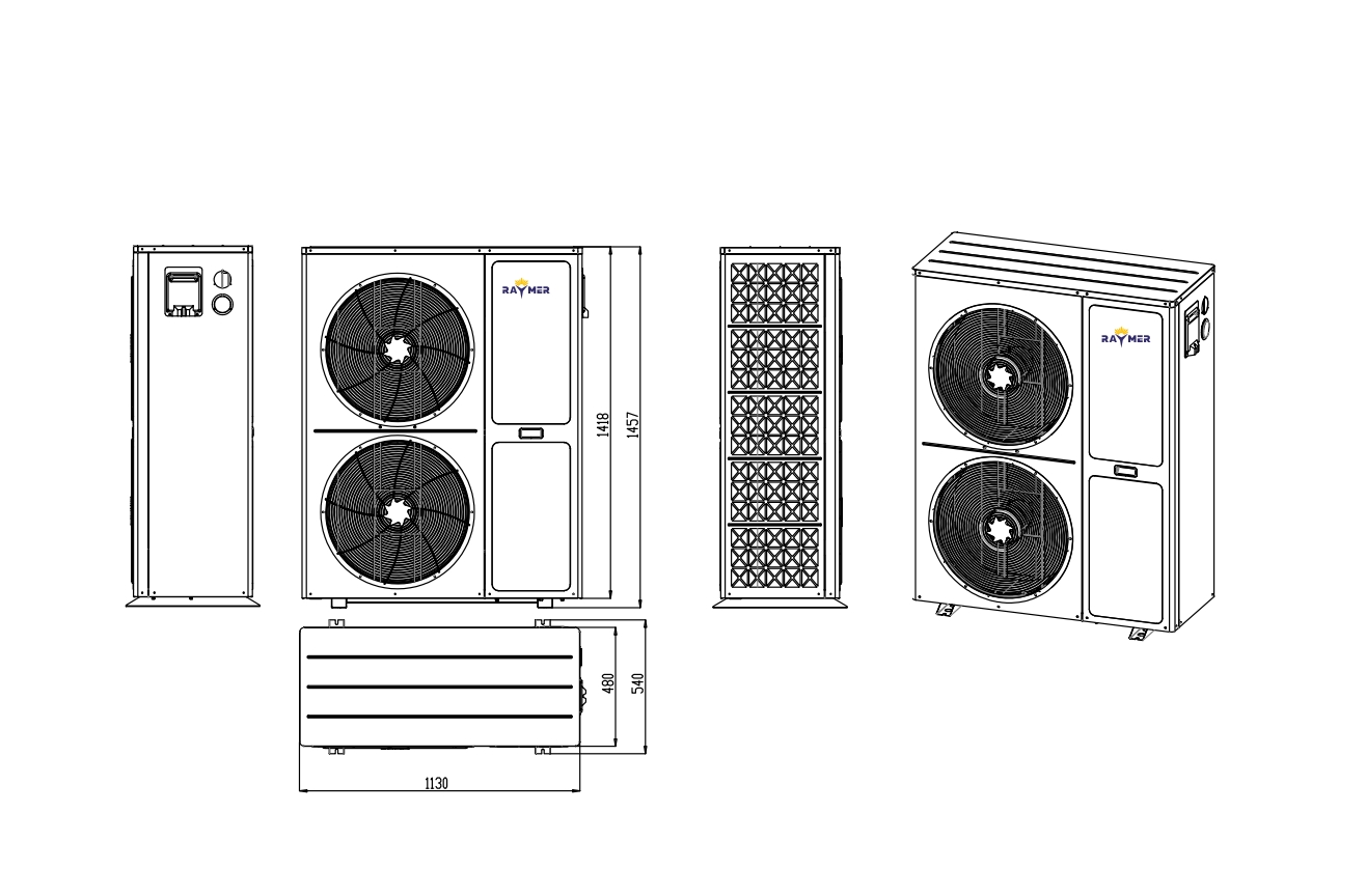 Новый дизайн в черном цвете, как результат новейших разработок и исследований в области теплооборудования для лучшего поглощения тепла из окружающей среды, делает тепловой насос Raymer RAY-18DS2-EVI (380V) лучшим выбором среди других отопительных систем.