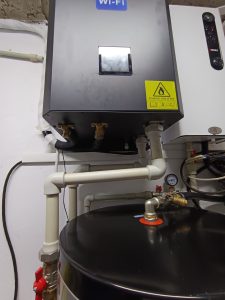 Заказчик решил выполнить монтаж самостоятельно, руководствуясь рекомендациями наших инженеров. Процесс включал установку и подключение всех необходимых компонентов: теплового насоса, гидромодуля, буферной емкости, бака горячего водоснабжения, стабилизатора напряжения и системы трубопроводов.