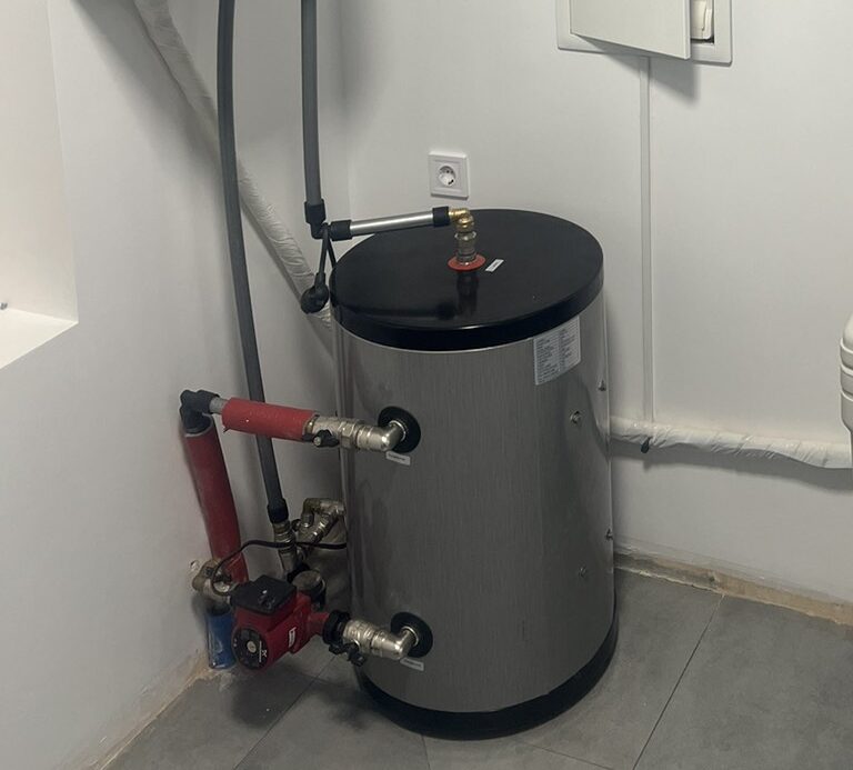 Цей резервуар допомагає рівномірно розподілити тепло в системі, зменшує частоту включення теплового насоса і підвищує ефективність нагріву.